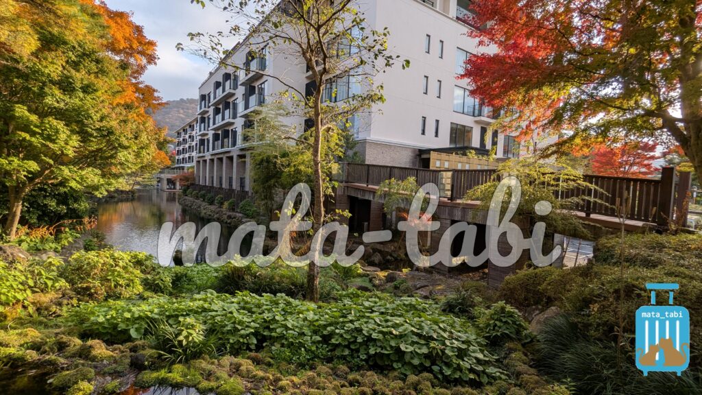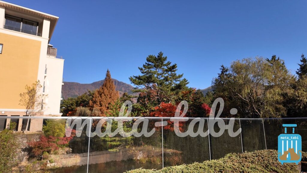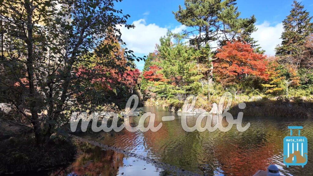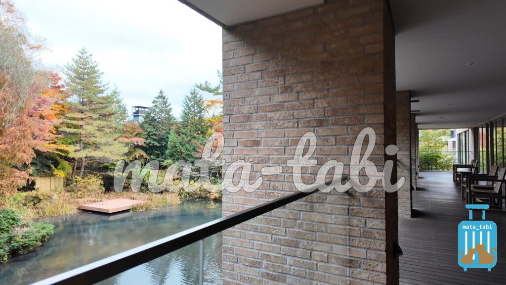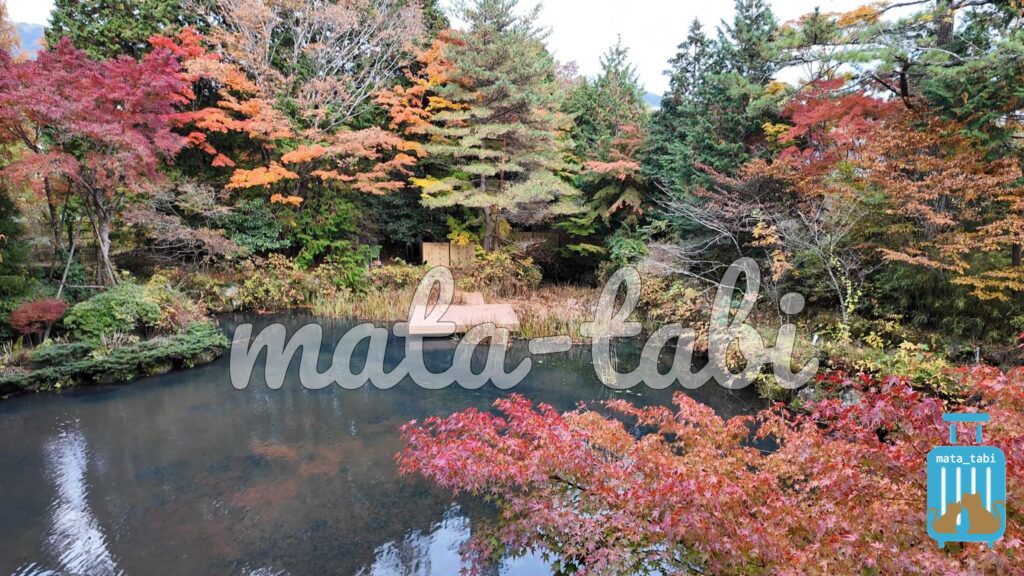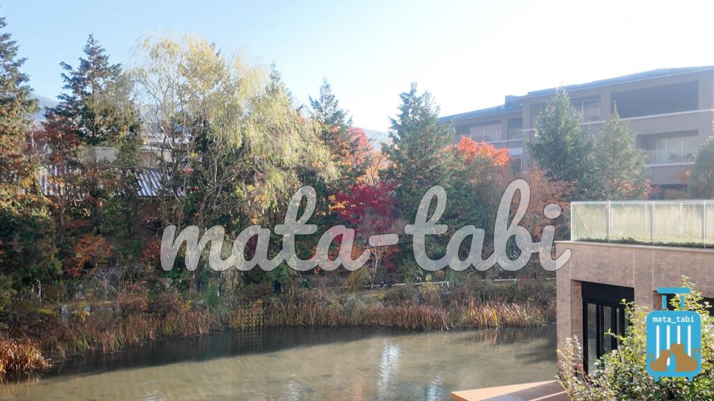 このホテルのシンボルである、素敵な池が出迎えてくれます。11月中旬のこの日は素晴らしい紅葉を見ることができました✨