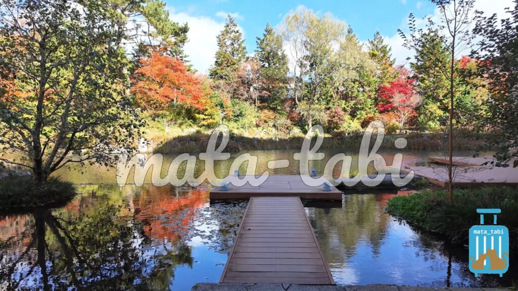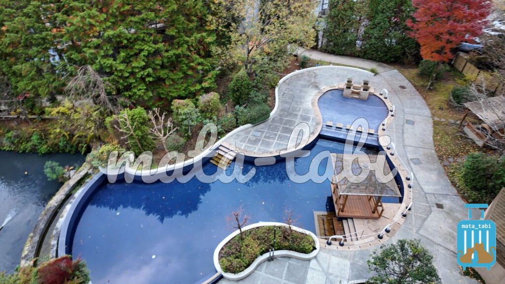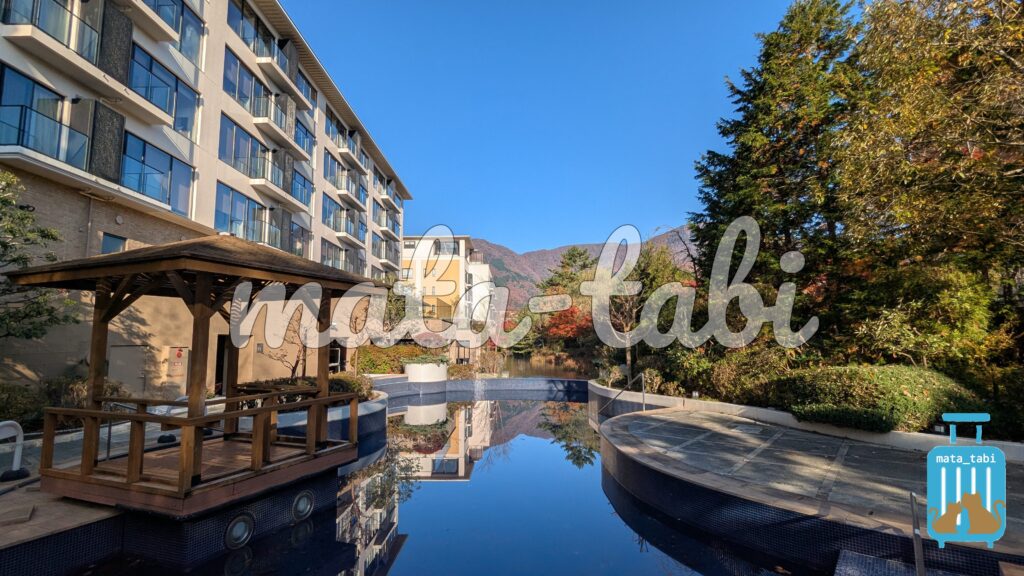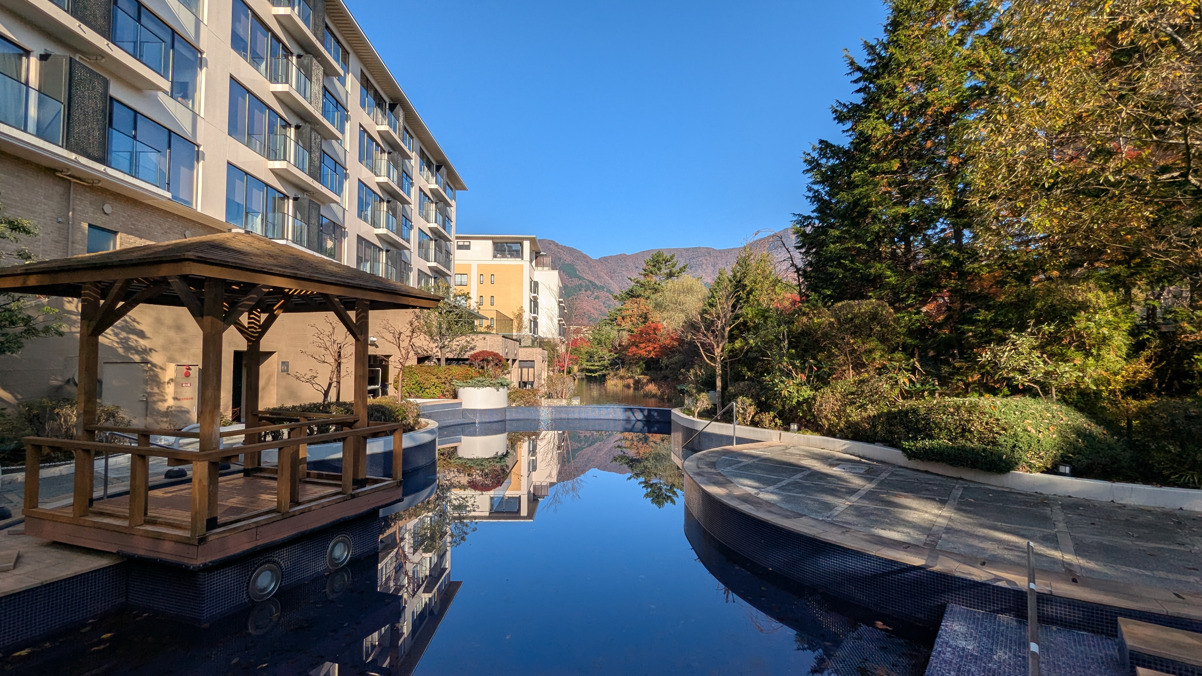 このホテルのシンボルである、素敵な池が出迎えてくれます。11月中旬のこの日は素晴らしい紅葉を見ることができました✨