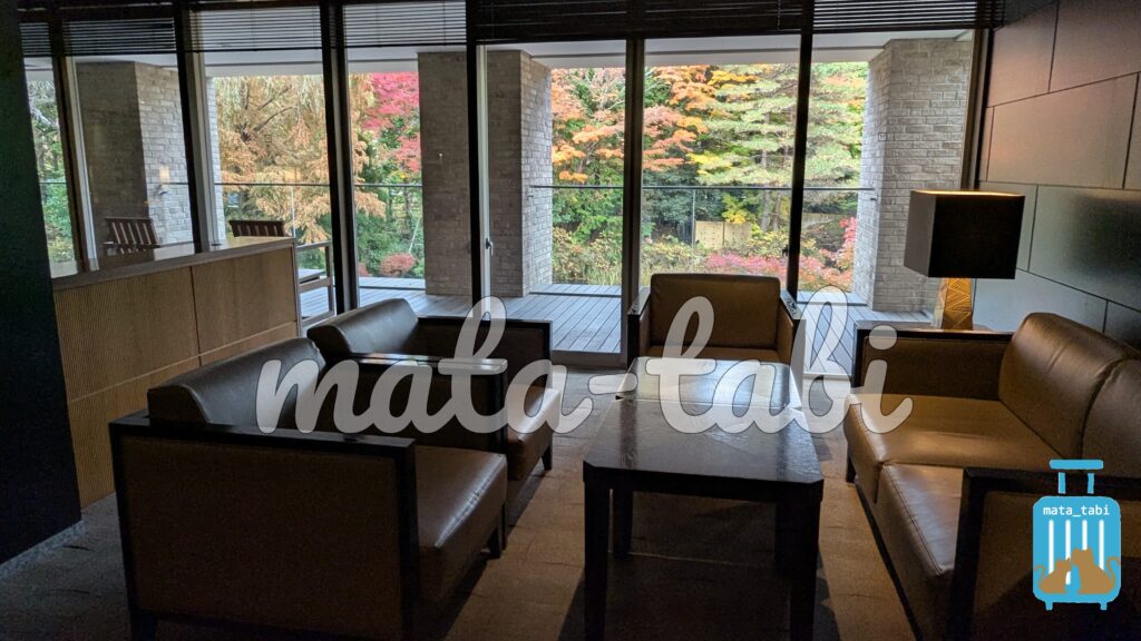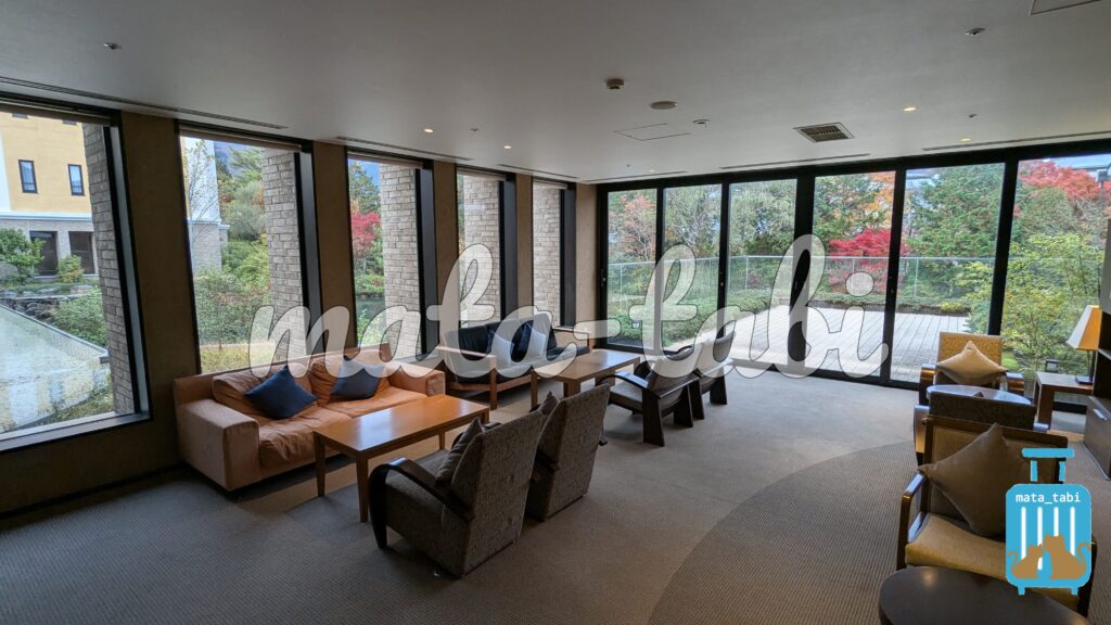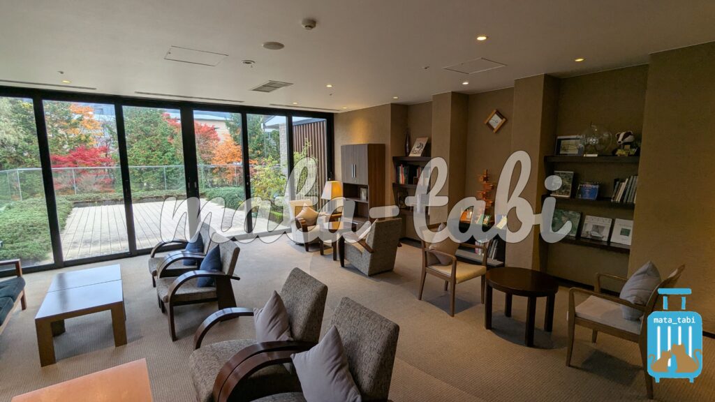 パート①ではラウンジでのチェックインと共用設備(紅葉が美しい中庭や売店、大浴場、貸切温泉風呂など)を紹介します。