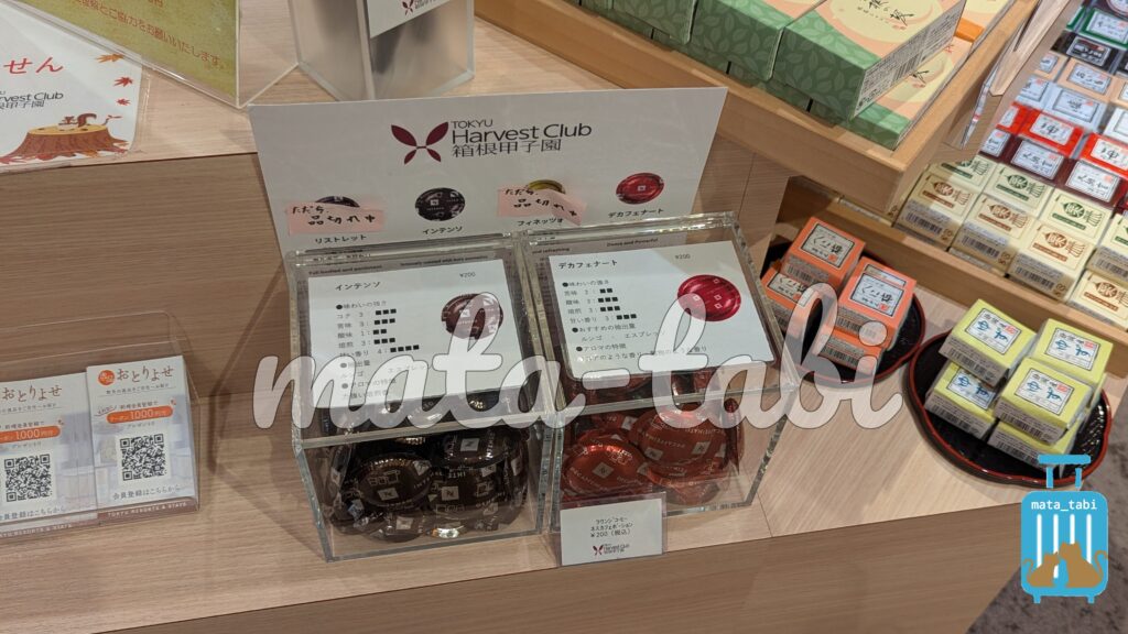 コーヒーのポッドは売店で販売されています。1杯200円と少々お高め。(売店は8時~21時まで。)