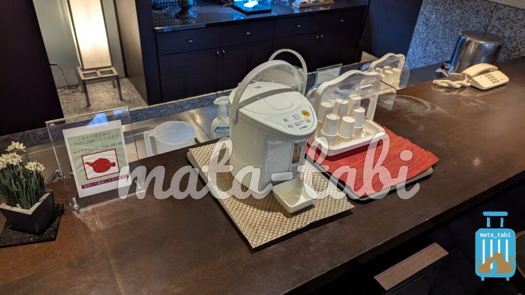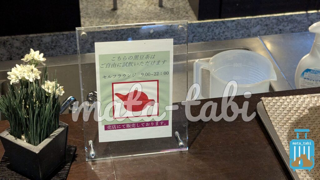 ラウンジのカウンターにポットが置いてあり、黒豆茶が入っています🍵