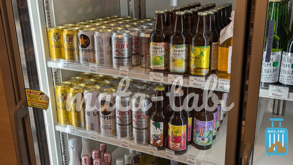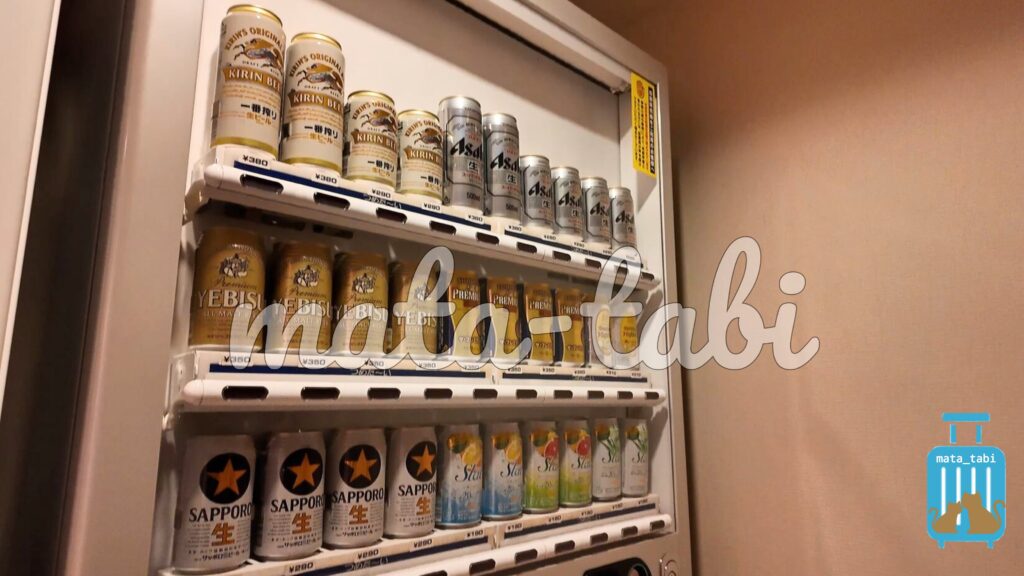 お酒の自動販売機にはビールなど。アサヒ、キリン、サントリー、サッポロが勢揃い!