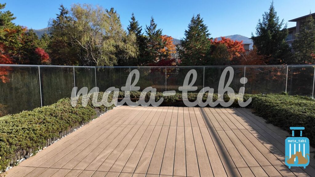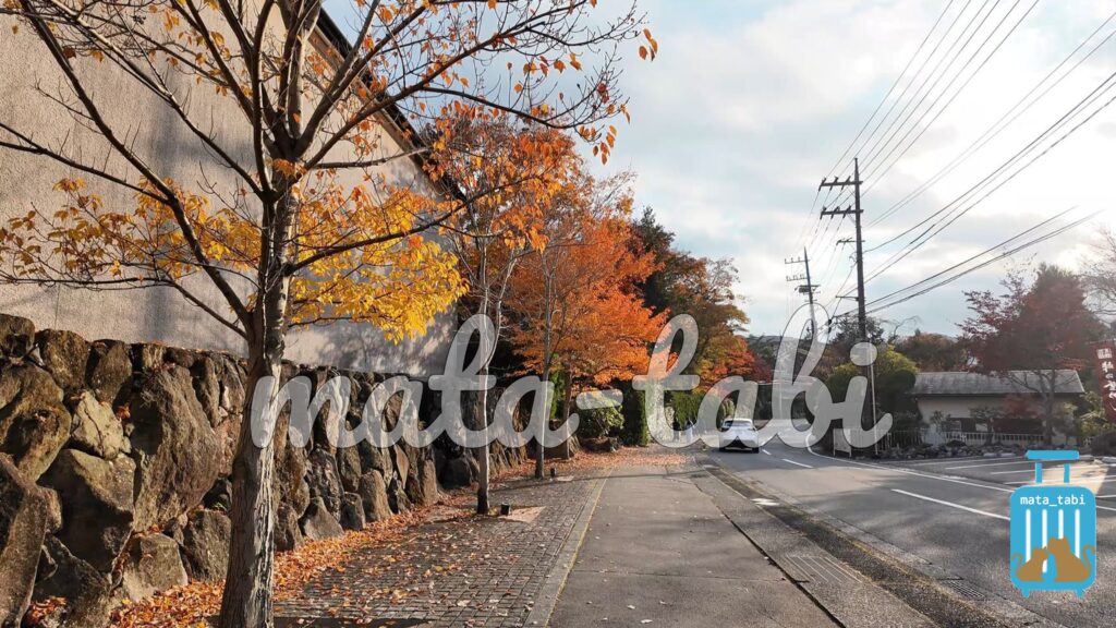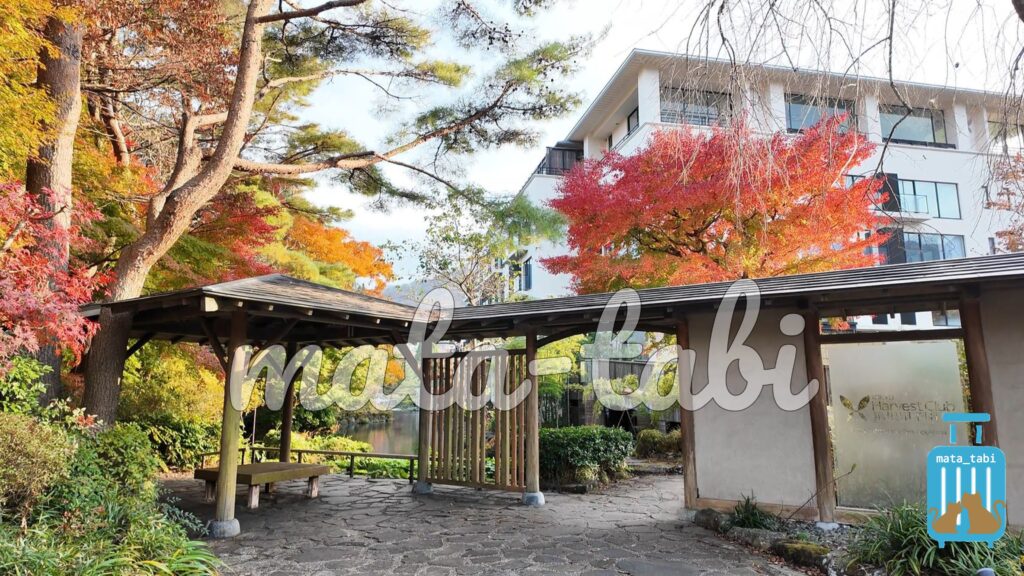 バス停「仙石案内所」からホテルに向かうと、裏門にたどり着きます。こちらも紅葉が映えていてとても綺麗です✨