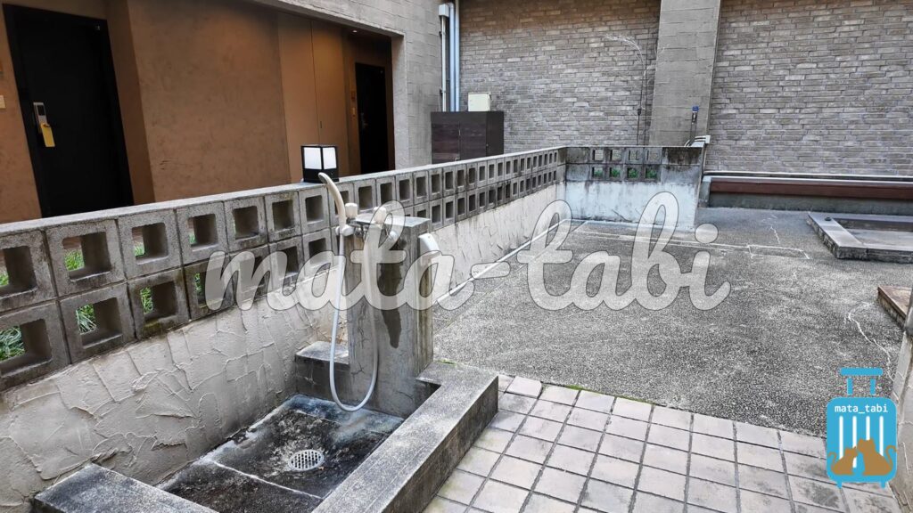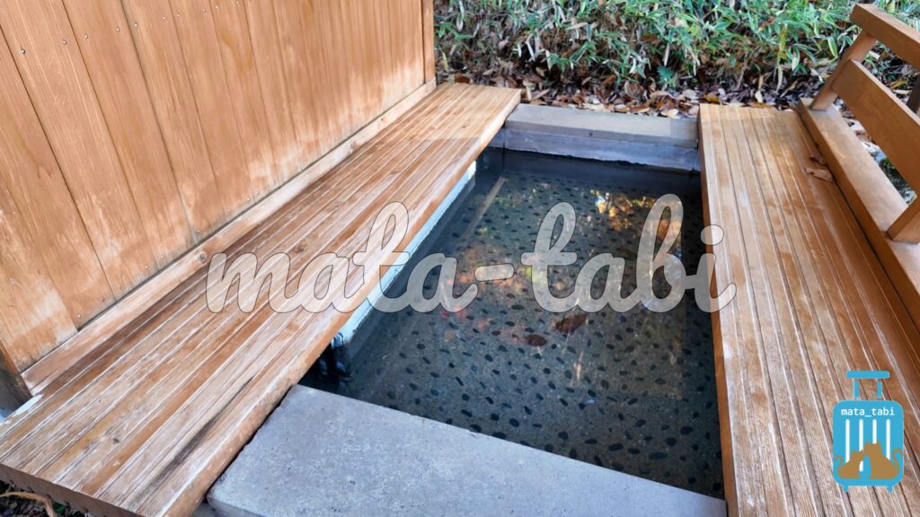 足湯にたどり着きます。タオルを部屋から持っていくのを忘れずに!