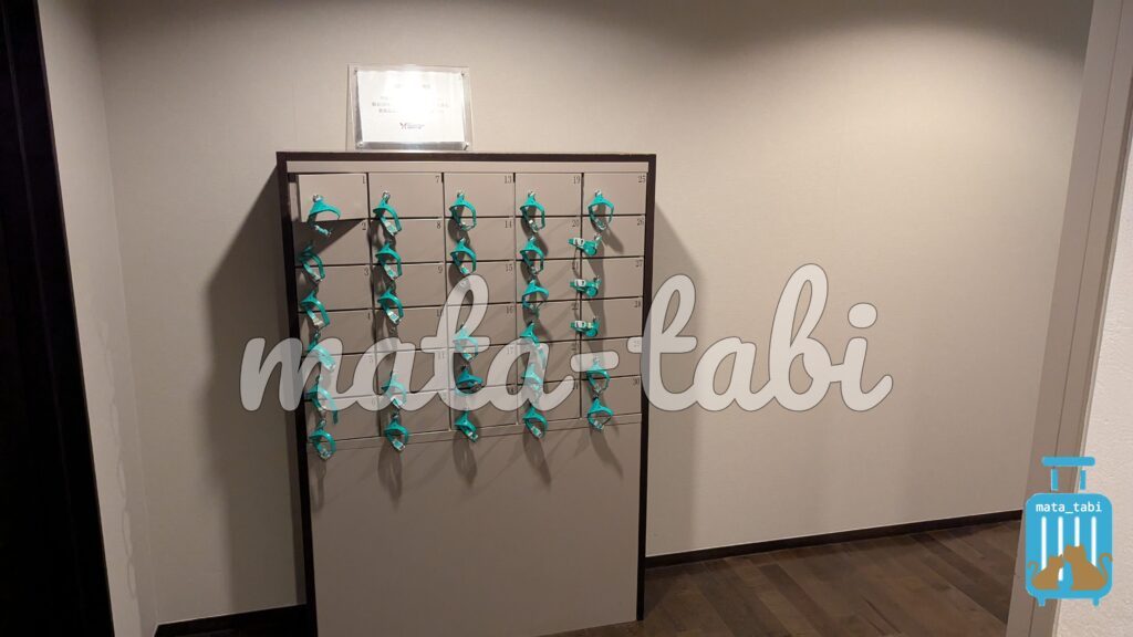 大浴場の手前に貴重品用ロッカーがあります。脱衣所には無いためここで使用しましょう。