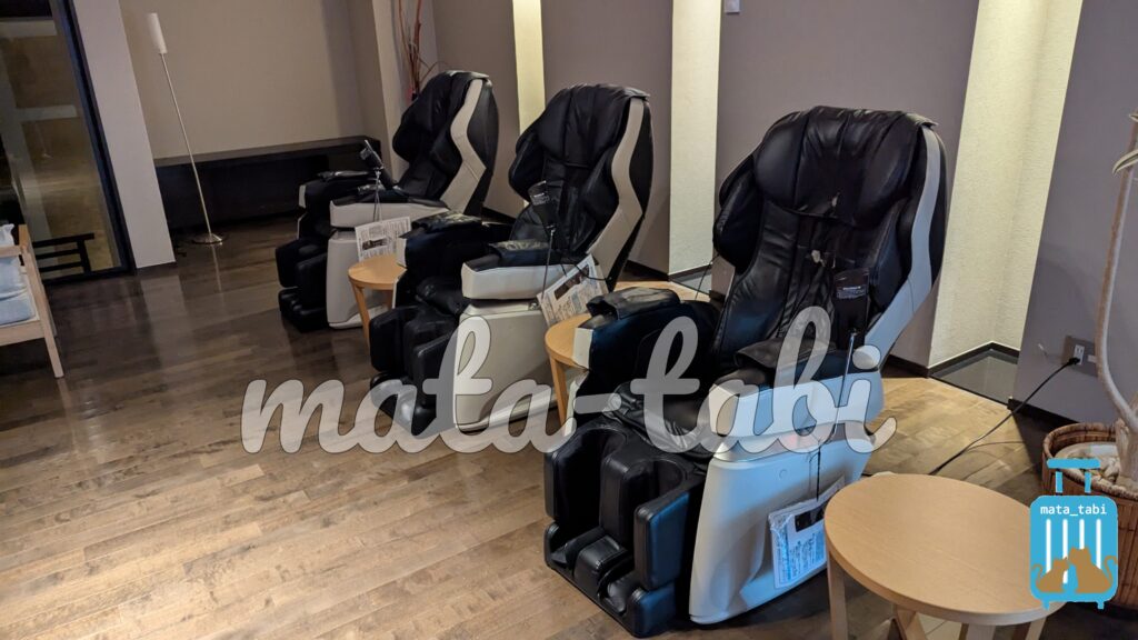 無料で使用できるマッサージチェアが3台用意されています。こちらは男女兼用でした。