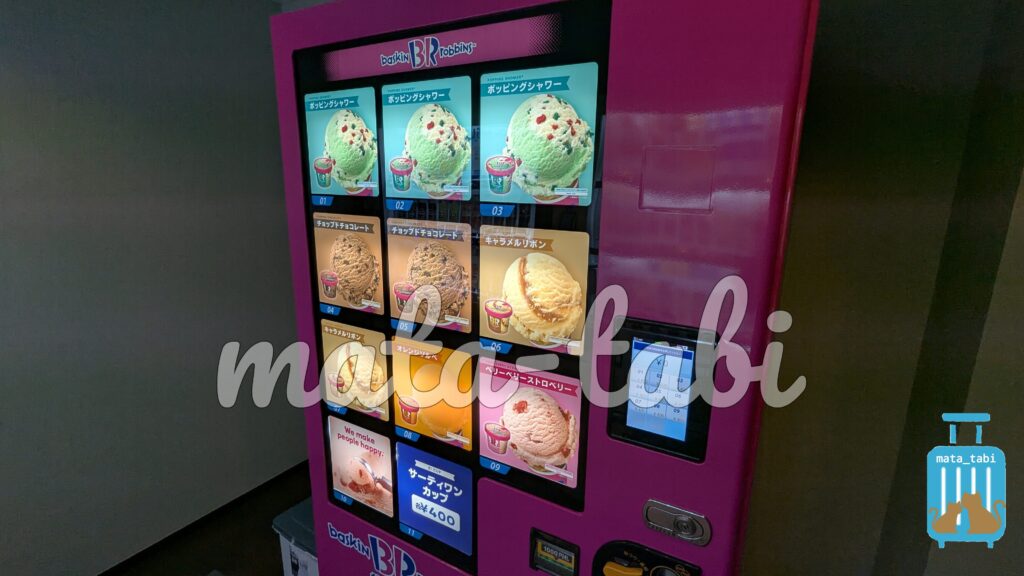 湯上り処横に自動販売機があります。サーティワン、ポッピングシャワーが誘惑してきました🍦