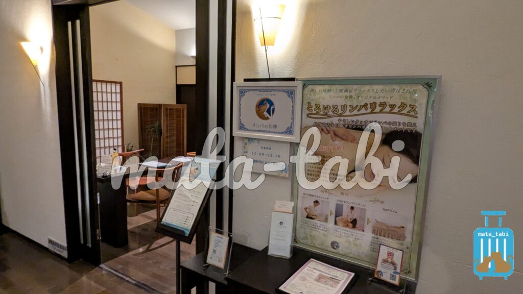 大浴場エリアの入口横には”リンパの女神“というスパサービスも用意されています。