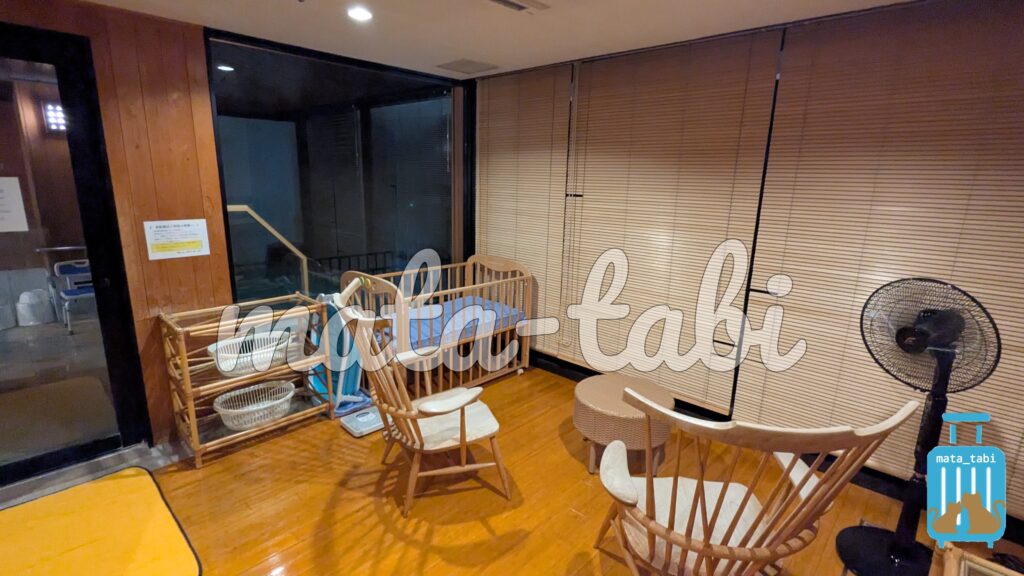中に入るとベビーベットがありました。4-5人くらいでも十分使えそうです。