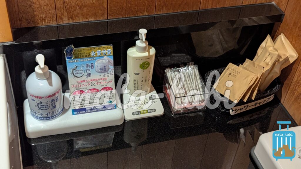 オールインワンゲルなどのアメニティ、綿棒やシャワーキャップ