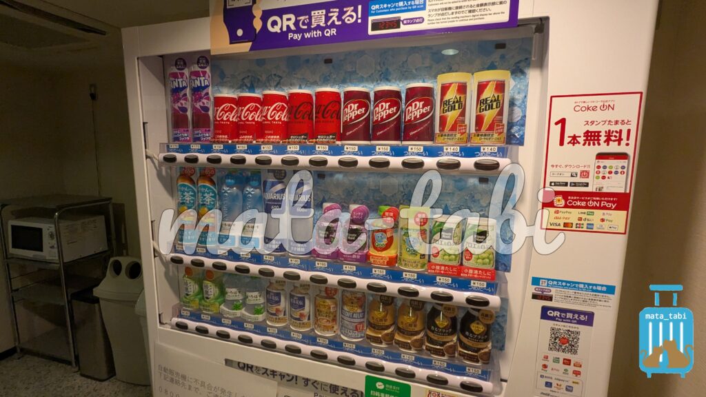 ソフトドリンクの自動販売機や、素泊まりの味方✨電子レンジなど。