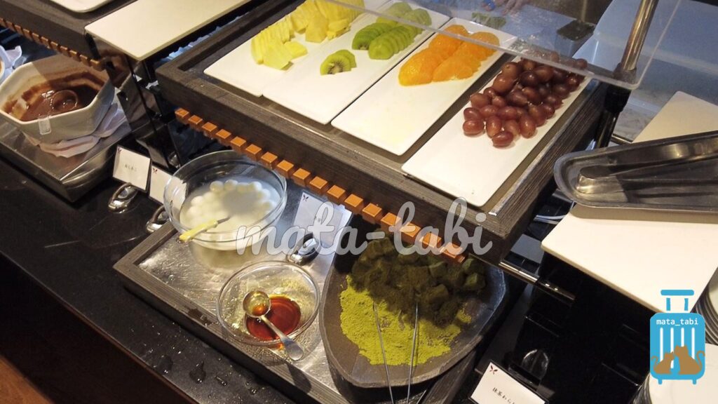 色どり豊かなフルーツや、わらび餅なんかもありました。