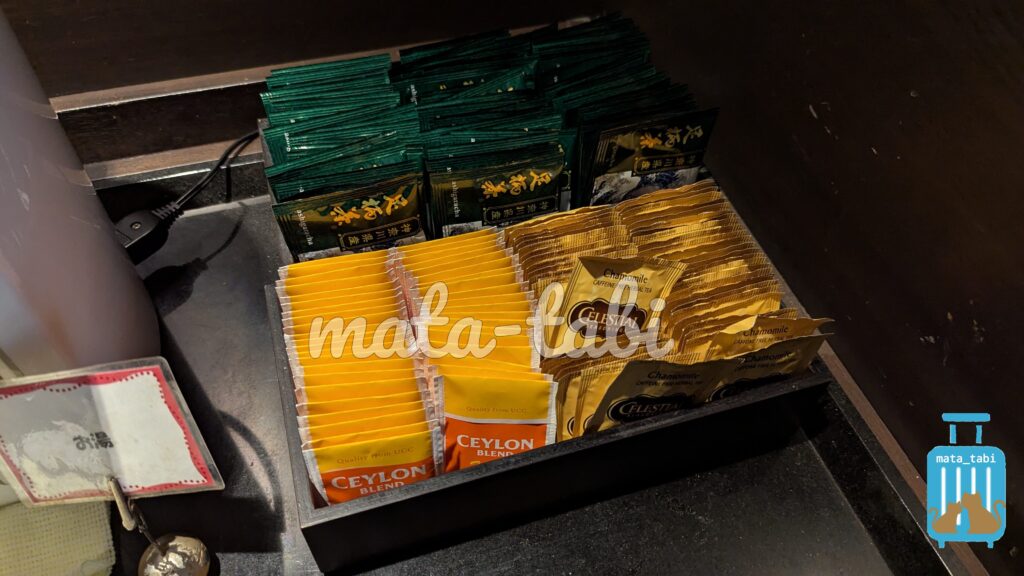 神奈川県西部の丹沢・箱根山麓一帯で生産されている足柄茶を飲むことができます。このお茶は、お部屋にも用意されていました。