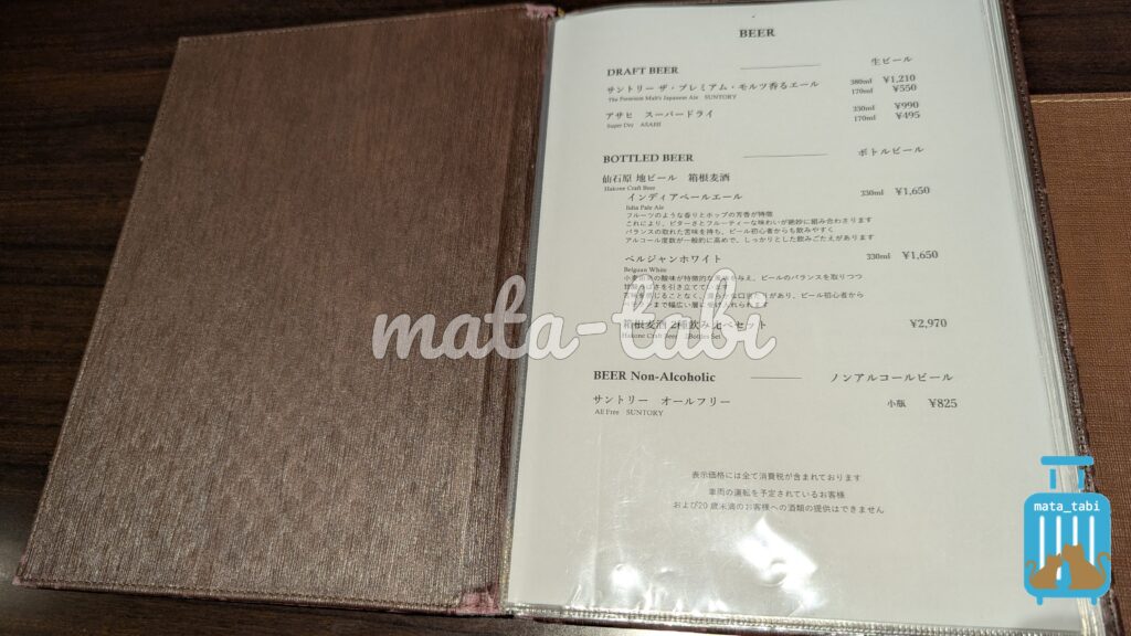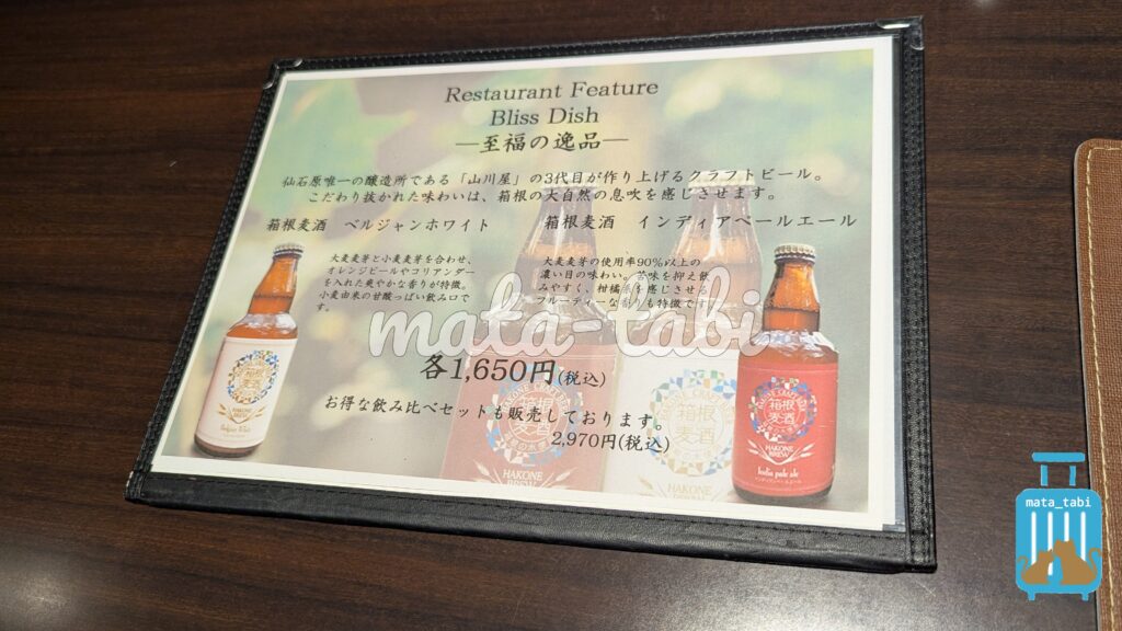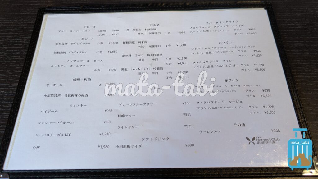お酒類はこちらのメニューが用意されています。箱根のクラフトビールなども🍺
