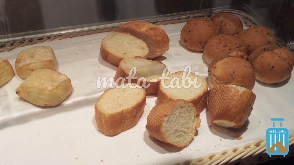 パンはコーン、胡麻、バゲットの3種類用意されていました。