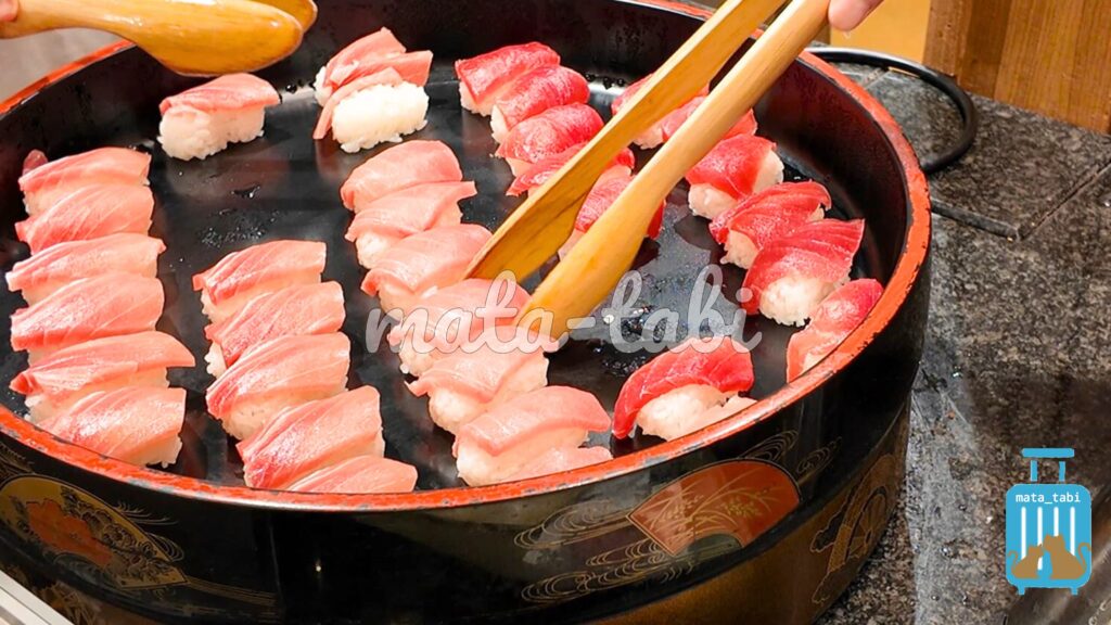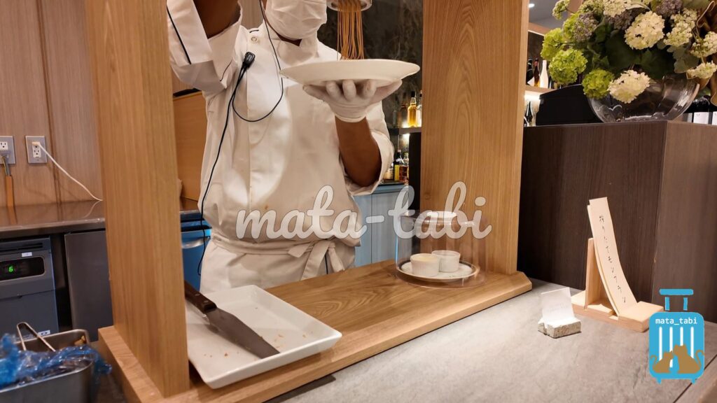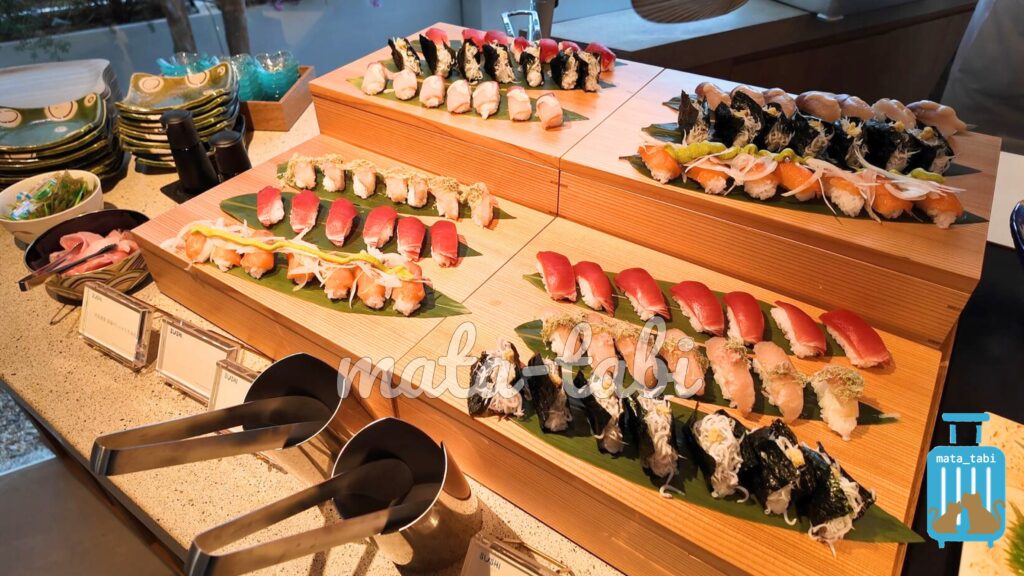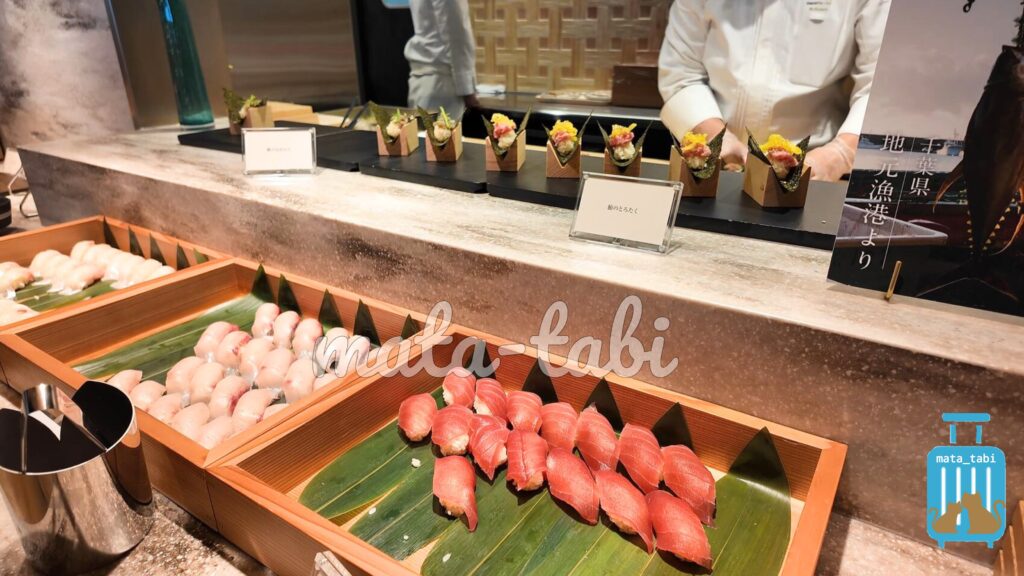 ライブキッチンでは握りたてのお鮨や、ローストビーフなど。