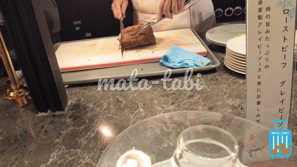 夕食は”ザ・ダイニング 万彩”でビュッフェ。ローストビーフが食べ放題♪