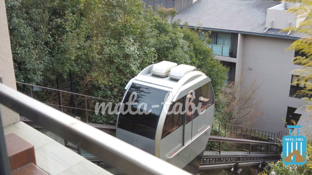 2つの棟を繋ぐスロープカーは食事時などに混雑していました。