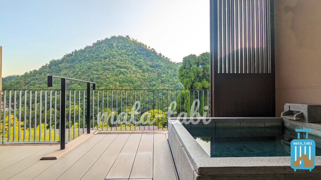 VIALA棟は一般棟と別エリアにありますが、大浴場やレストランなどは一般棟の宿泊棟と共用です。鷹峯を眺められる温泉付き客室があります♨京都は温泉が少ないので、夫のお気に入りです♪