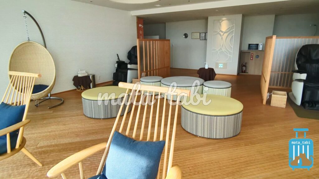 露天風呂はありませんが内湯、マッサージチェアや海を眺めるサウナなどでくつろげます🍃