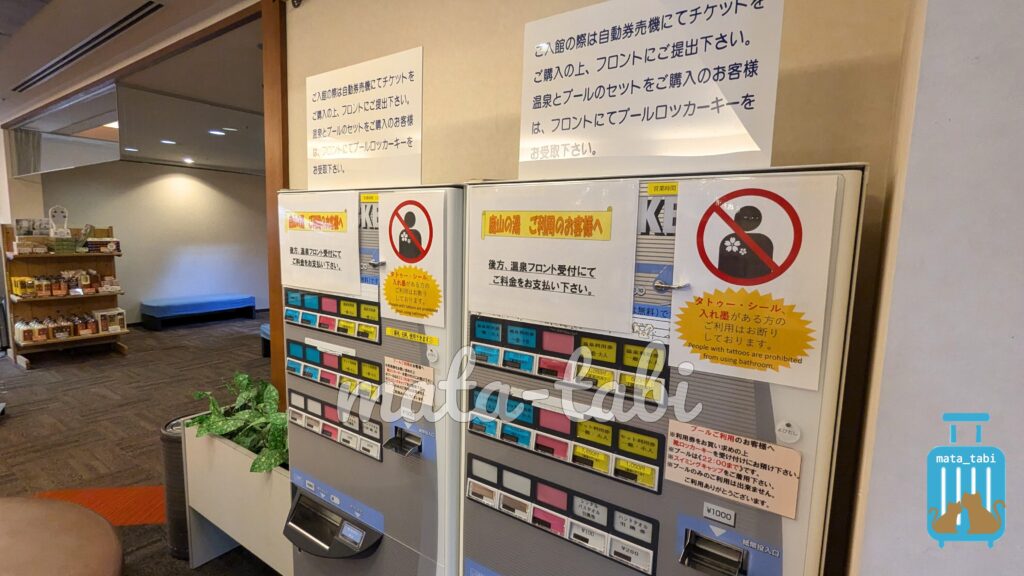 露天風呂があればさらに嬉しいところです。自動販売機がありますがお酒は無し、21時までの売店のみで販売のためご注意ください。