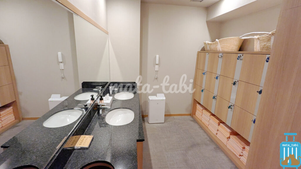 脱衣所はコンパクトです。鍵付きロッカーやタオルも用意されています。
