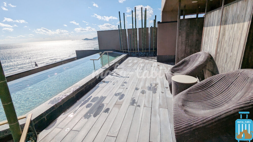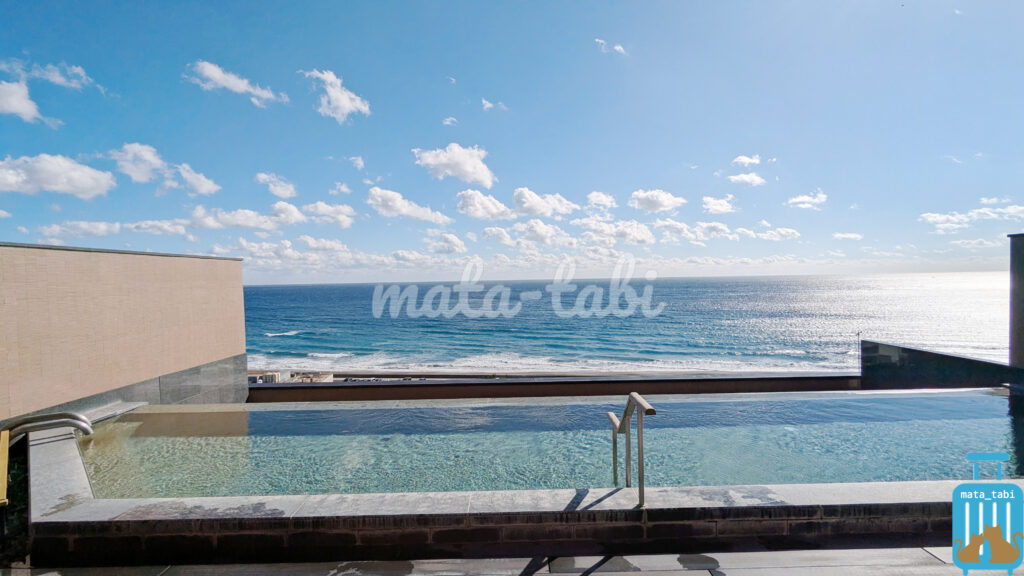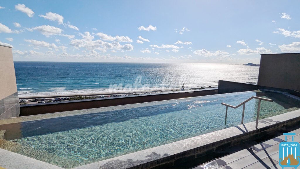 太平洋を望む絶景のインフィニティ温泉プールと、チェックアウト後も利用できる大浴場は特に魅力です♪充実した設備で、夫婦旅にもぴったりの癒しの時間を過ごせます。