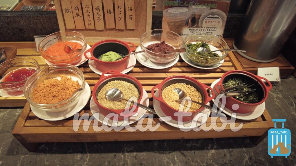 出汁茶漬けコーナーには長野県の特産品、野沢菜を混ぜた昆布なども