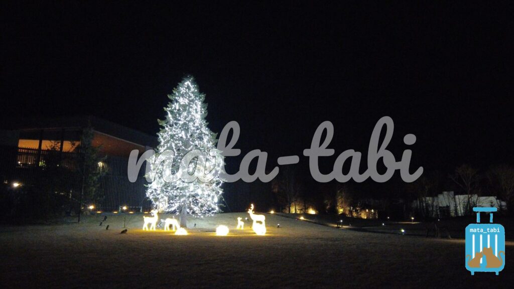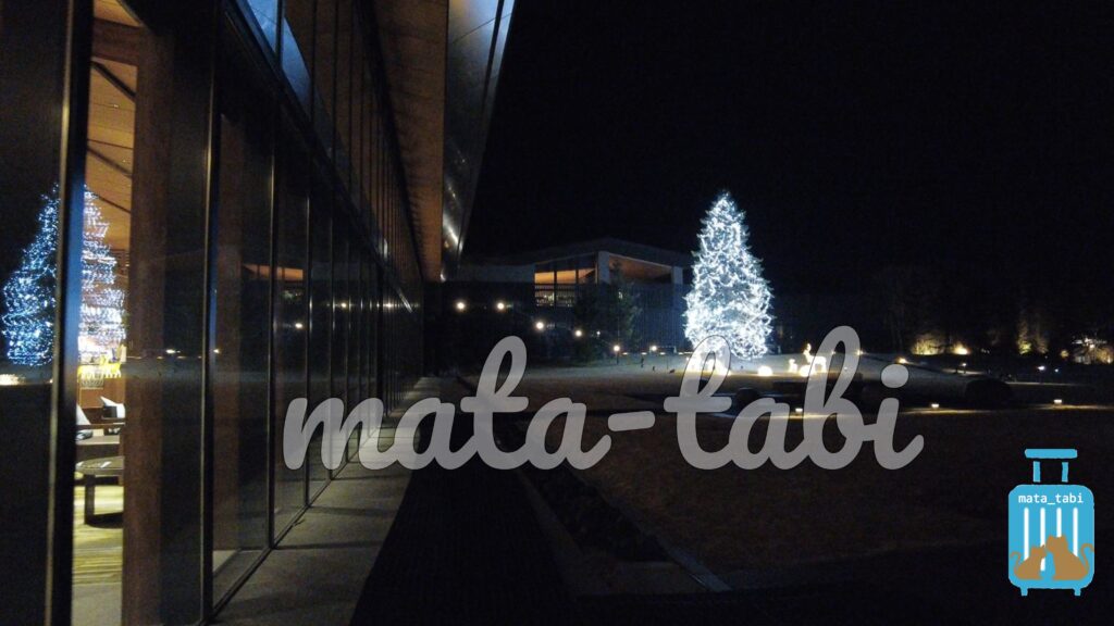 asama diningの窓の外では、ツリーがライトアップされています✨