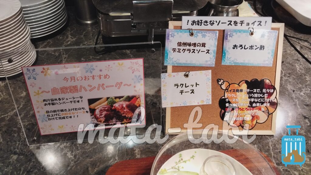 ソースを信州味噌のデミグラスソース、ラクレットチーズ、おろしポン酢の3種類から選べます。