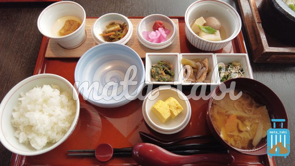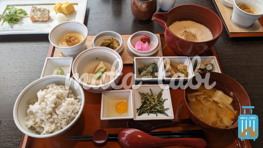 朝食はasama diningのビュッフェか、日本料理 新樹で和食御膳となります。