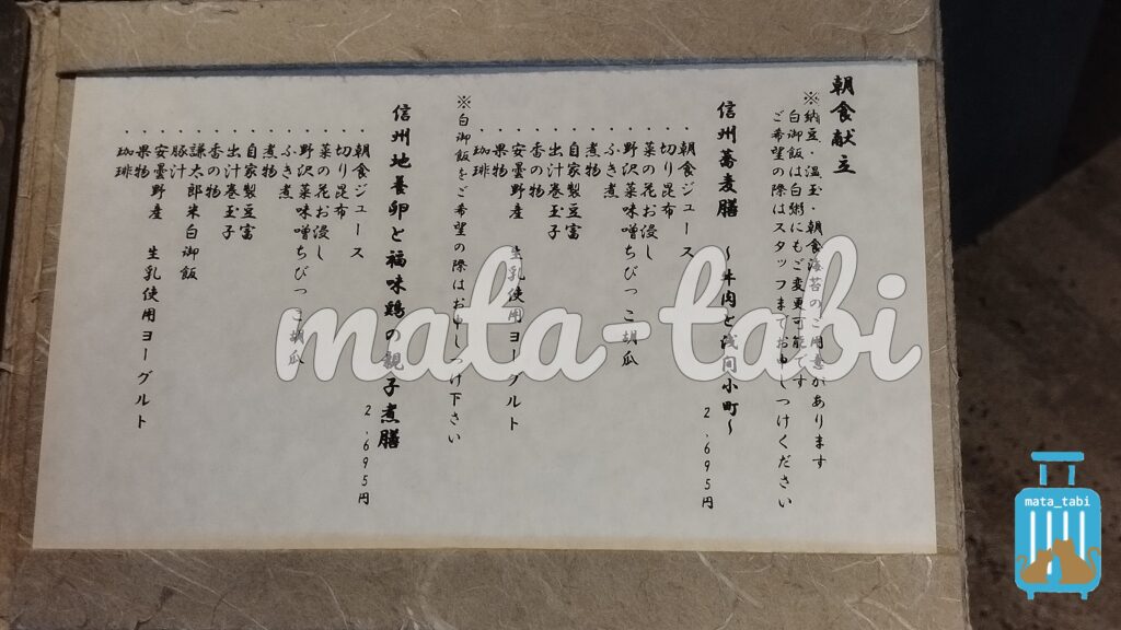もう一つのレストラン、asama diningでは朝食ビュッフェをいただけます。次回はぜひそちらも利用したいです♪