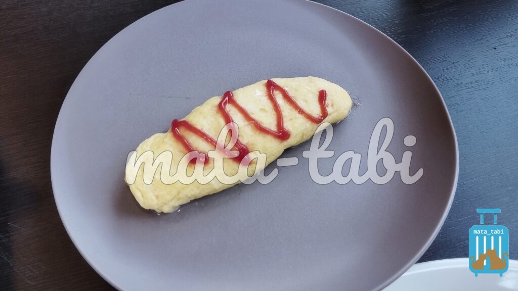 一品目はシェフが目の前で焼くオムレツ🥚ふわふわでした♪