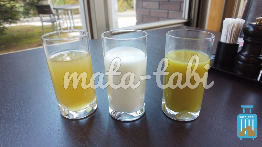 ケールジュース、ヴィネガージュースりんご、牛乳、リンゴジュース、オレンジジュース、トマトジュース🍅