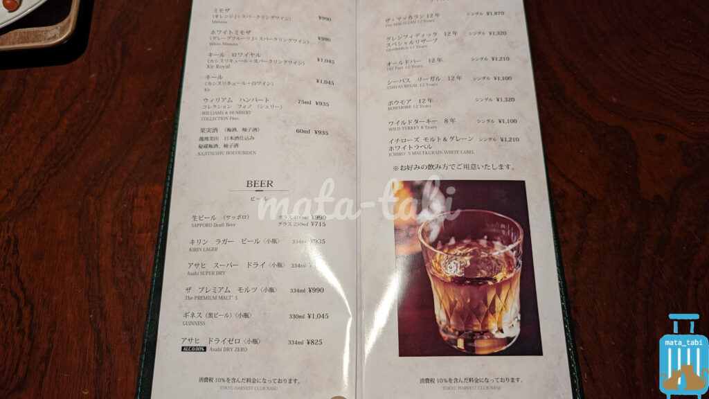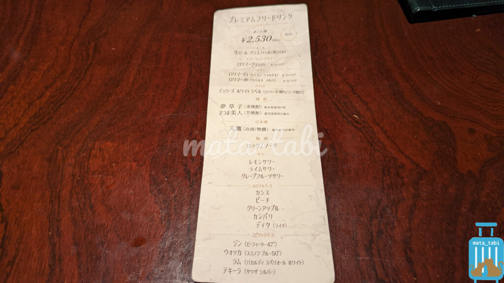 ・夕食ドリンクの追加オーダー無し