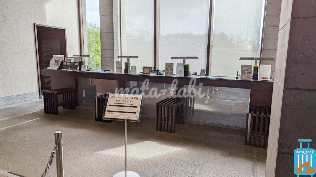 なお自家用車で行った場合は、裏のエントランスからホテルに入っていきますが、ここにも自動チェックインカウンターがあり利用可能です。
