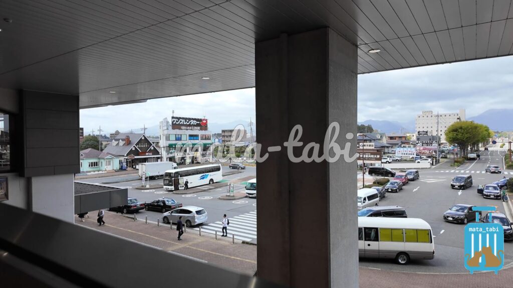 駅前のロータリーには複数の宿の送迎車が来ていますが、私たちが訪れた際はスタッフの方が外で出迎えてくれました。