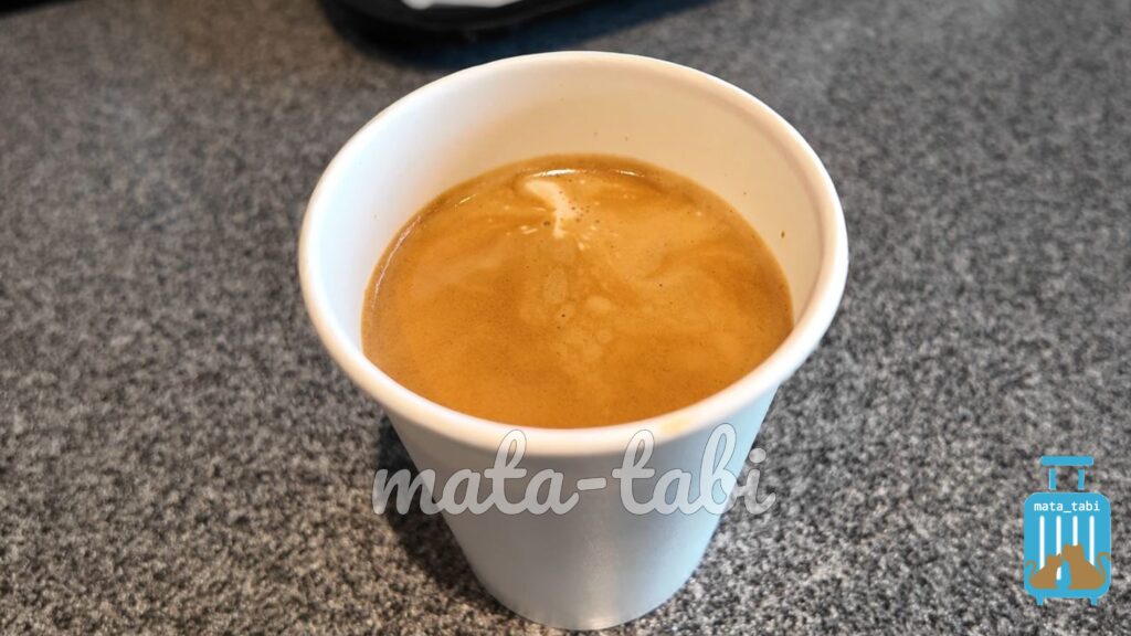 ホテルハーヴェストでは客室にコーヒーの用意が無いため、売店でポッドを買い、カプチーノをいただきました。
