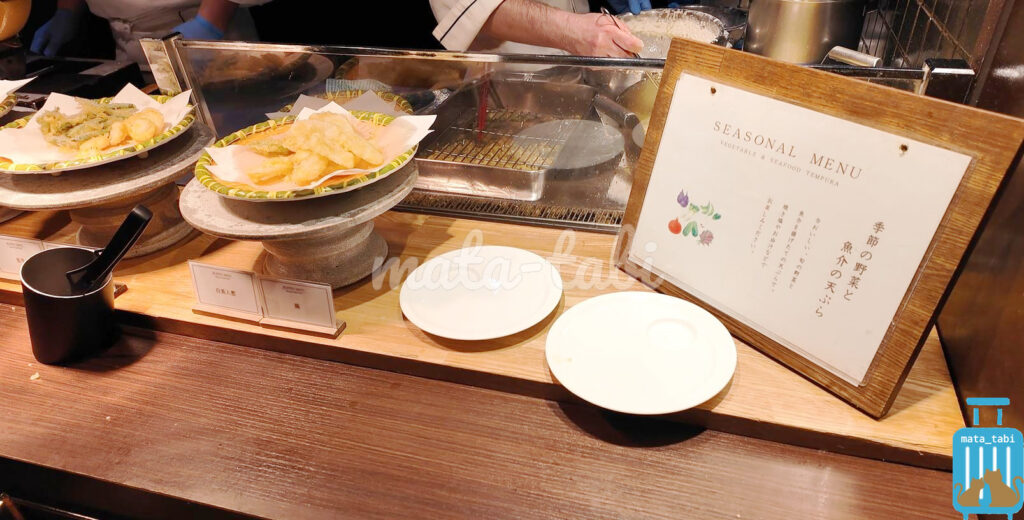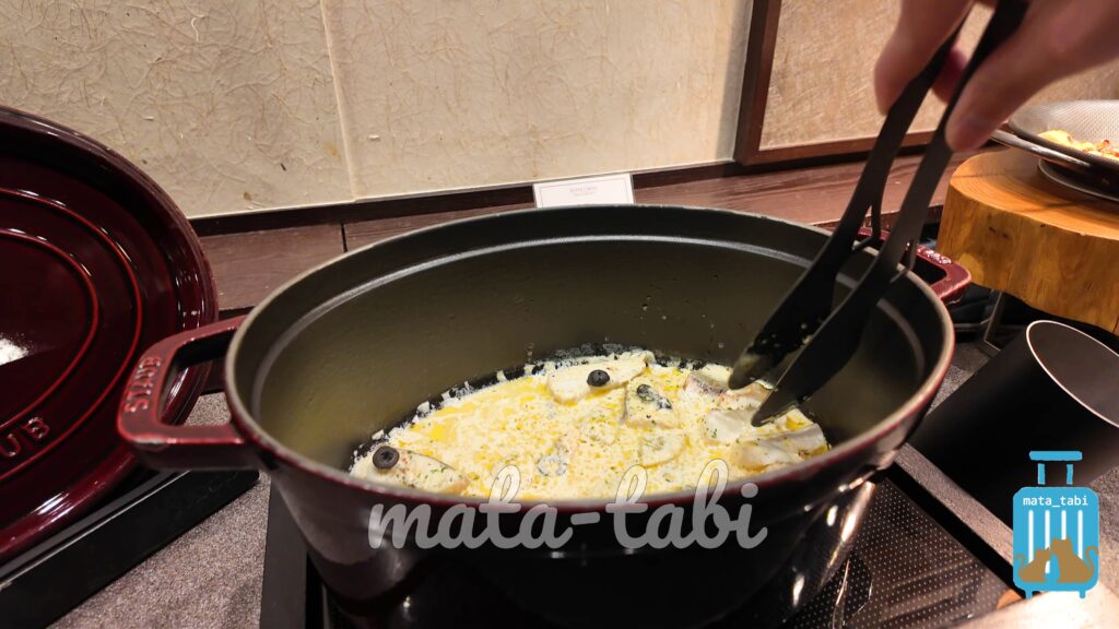 夕食ブッフェの目玉は、シェフが目の前で調理するライブキッチン。肉厚なローストビーフや揚げたての天婦羅に加え、那須ならではの「濃厚トロトロなラクレットチーズ」は必食です。