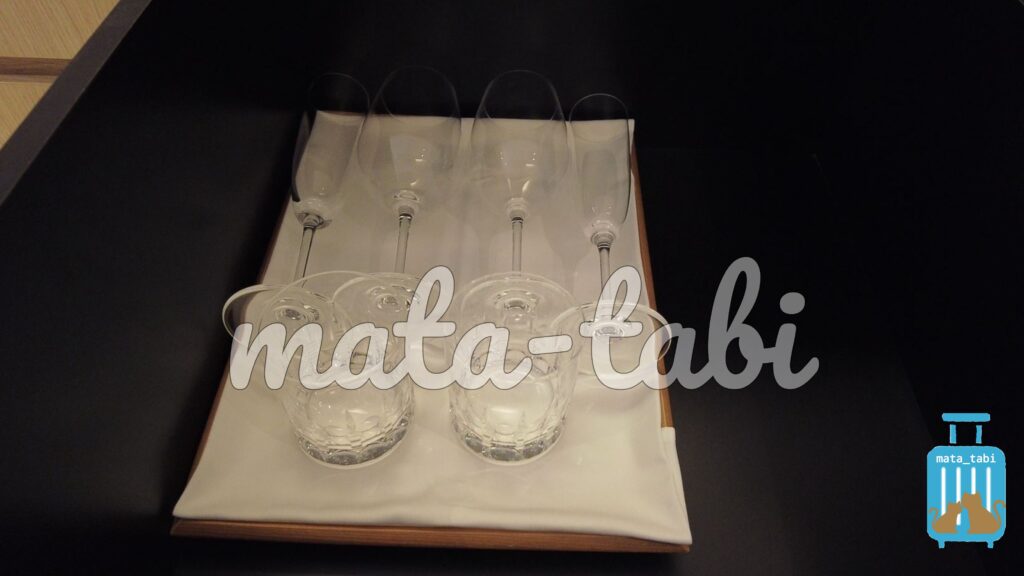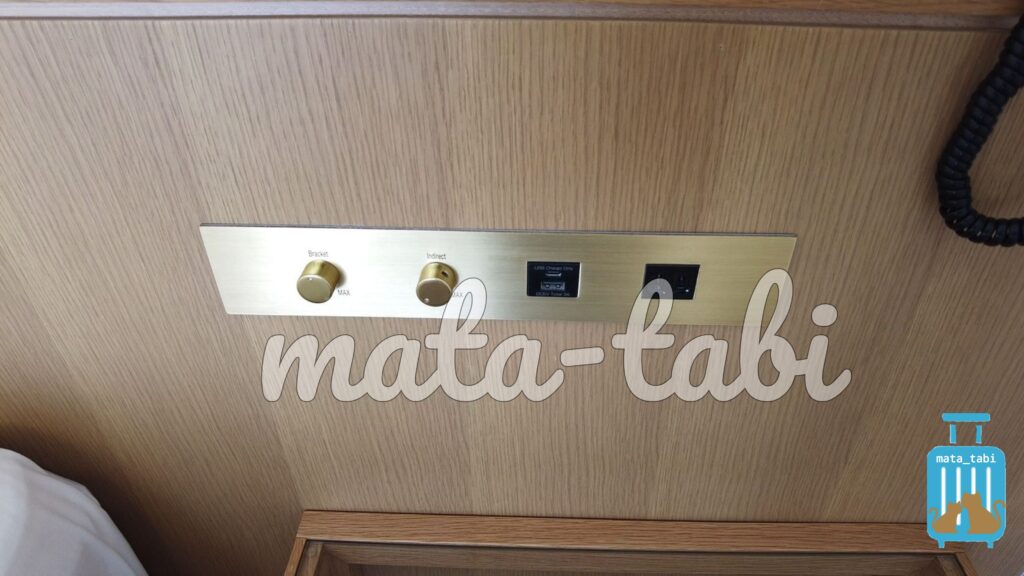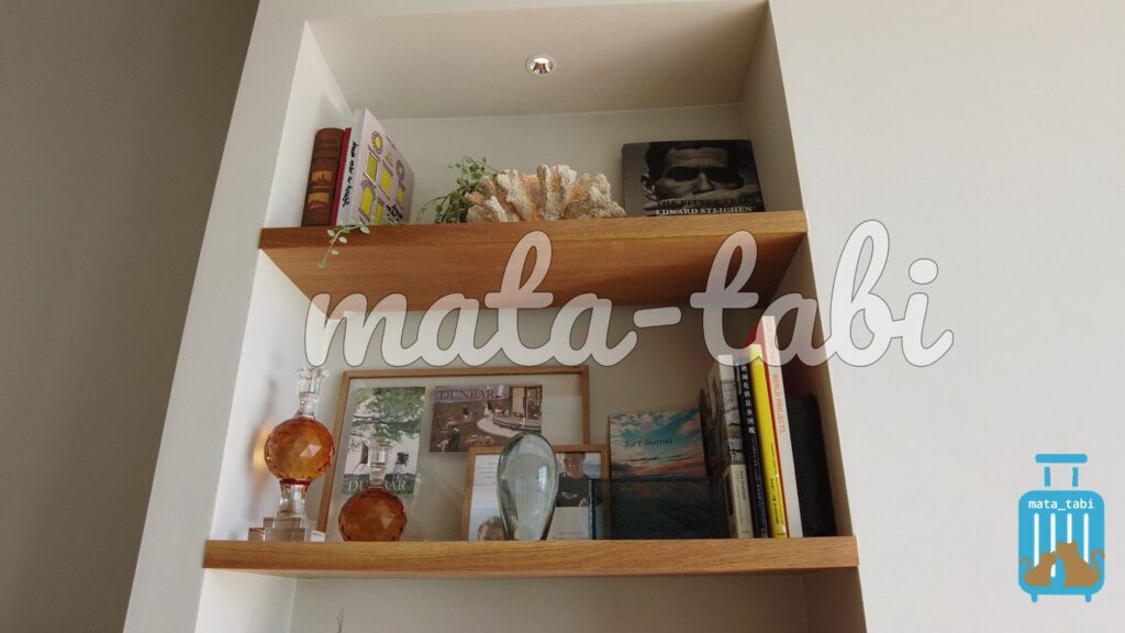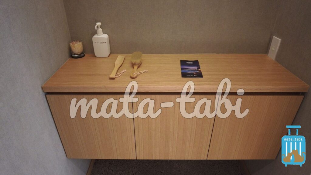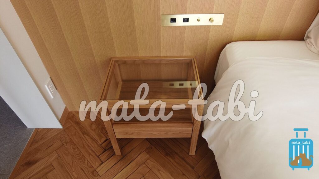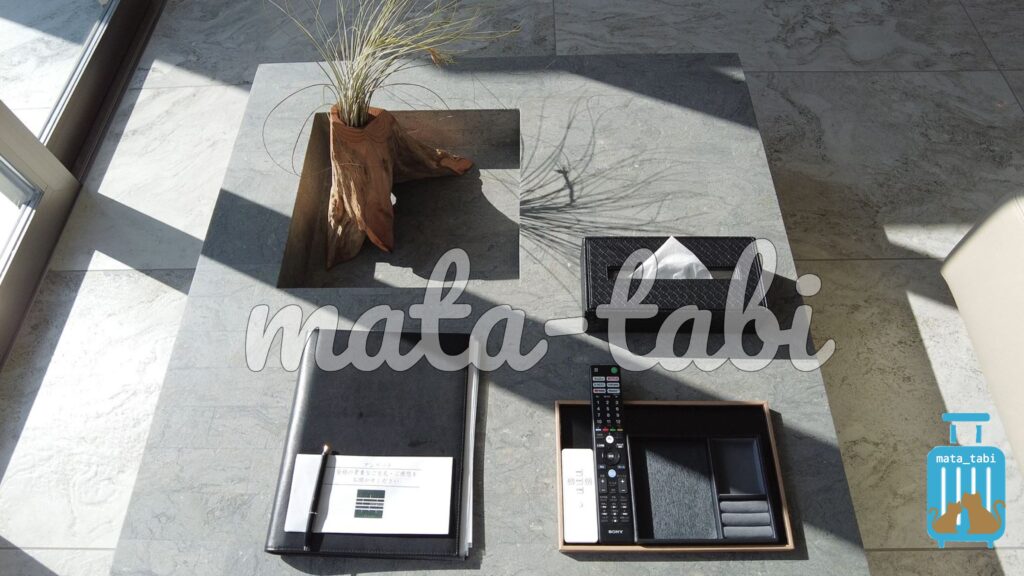 テーブル上には館内案内やアクセサリー置きなど、細やかな配慮が感じられました。