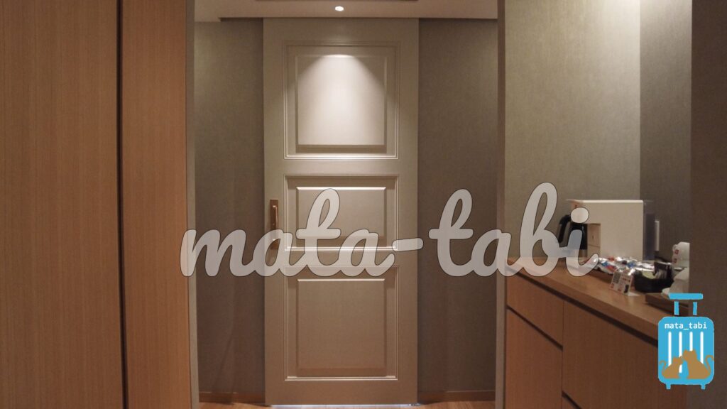 扉を開くと右手にミニバー、左手にお手洗い、正面にはリビングに続く扉があります。