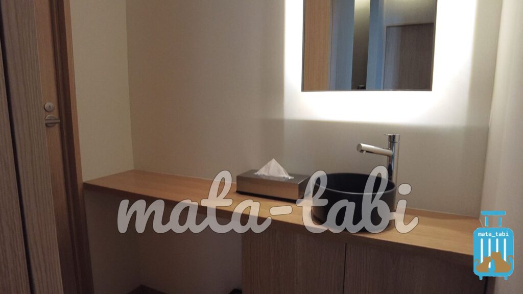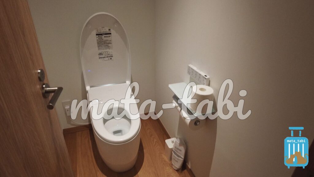 先ほどのミニバーの反対側にお手洗いがあります。お風呂エリアから独立した個室です。