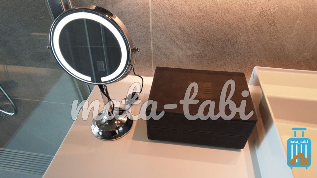 ライト付きの拡大鏡付ミラーがあって便利♪