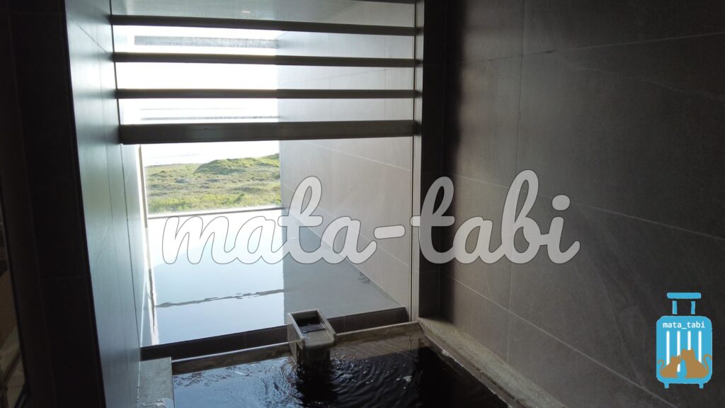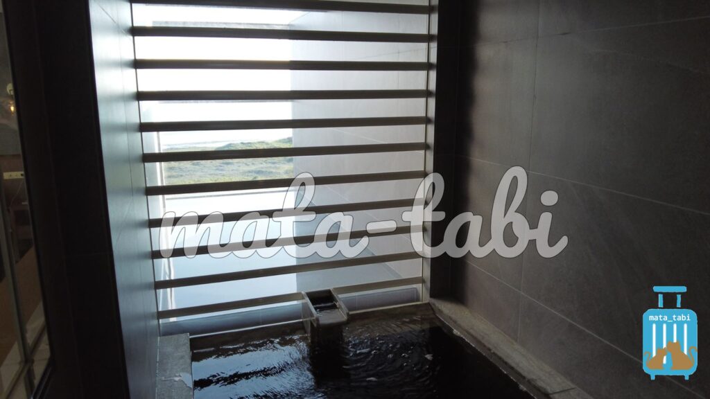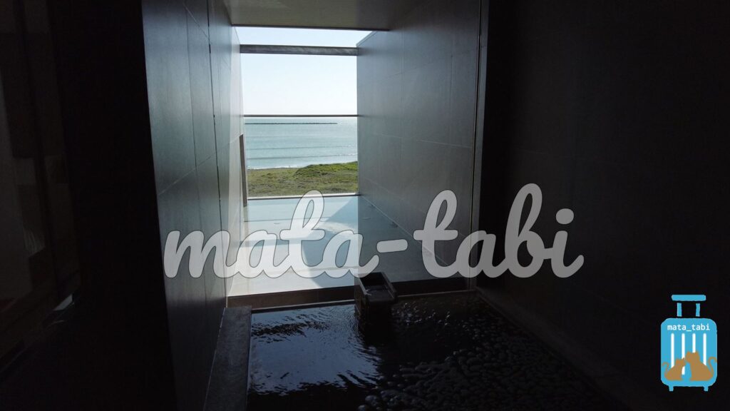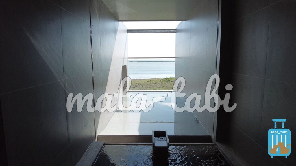 手前が浴槽、奥には綺麗な水盤が✨そして窓の向こうに館山湾が広がります🌊