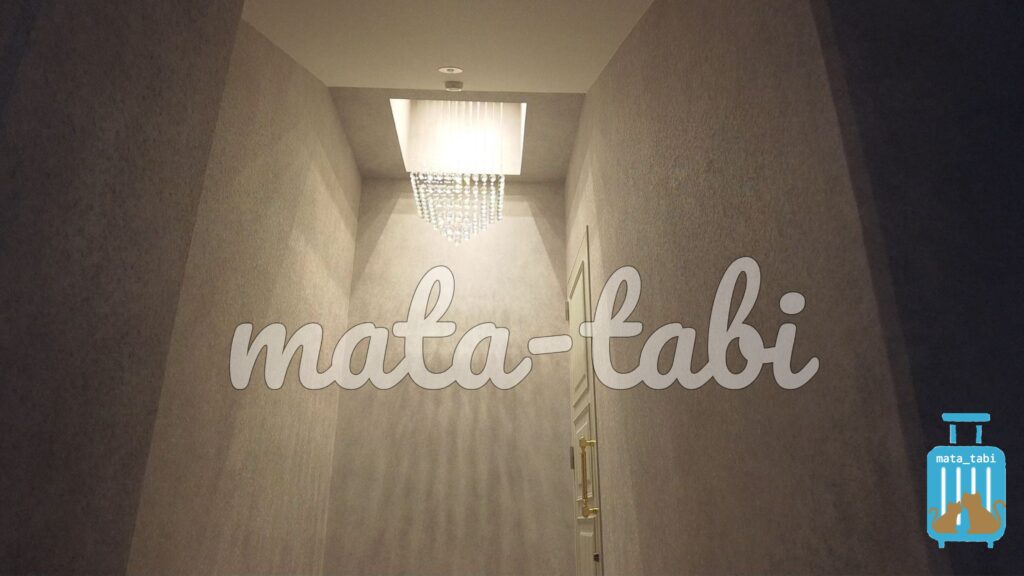 今回宿泊する”the rokuza”はスイートルームです。入口にシャンデリアが✨