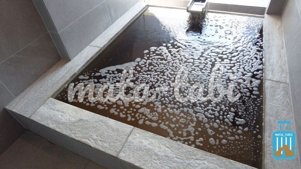 こちらはもちろん温泉です♨ 少し茶色がかっていて泡立ちがあります。