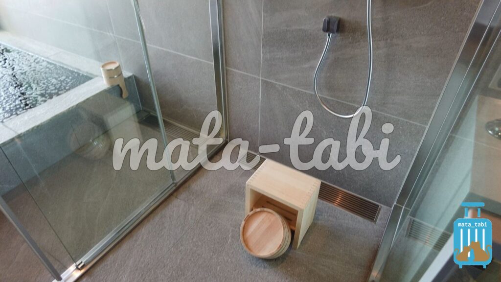 露天風呂手前のシャワールームにはレインシャワーもあります。