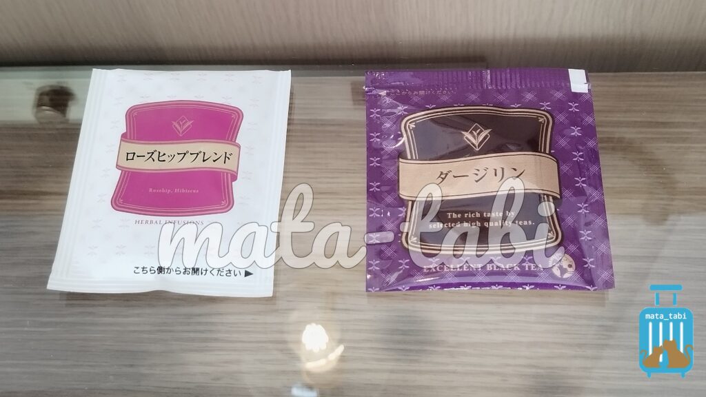 ローズヒップティーとダージリンティー、緑茶もありました。
