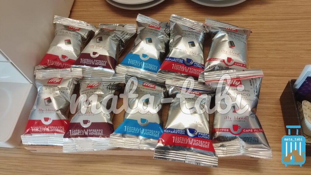 電気ケトルとillyのエスプレッソマシン。ポッドが豊富!全部飲みました☕