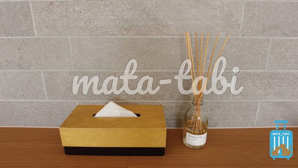ベッド上にはティッシュペーパーと、香りの良いルームフレグランス♪